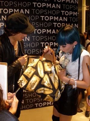 Carl Barat signing Yulia's Jeremy Scott bag...oh how so many worlds collide!
